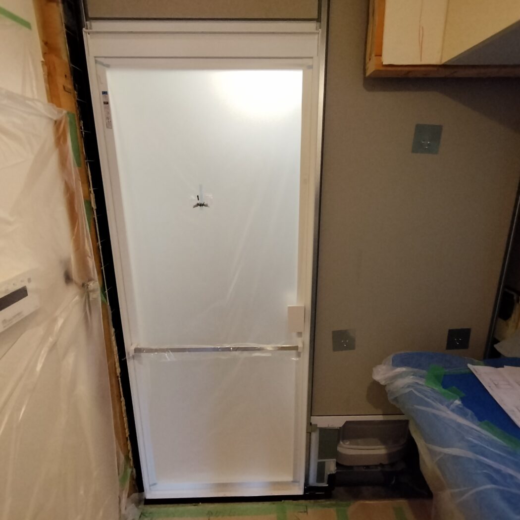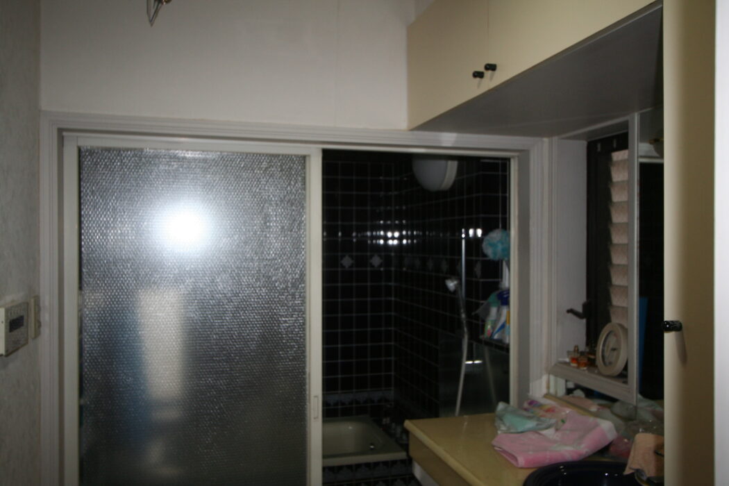 お風呂場への出入りは、一間の引き戸からドアに変更しました。