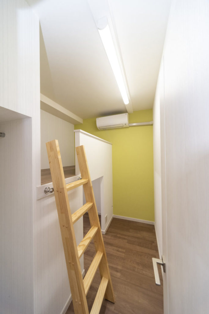 子ども部屋は、限られたスペースに机とベットを配置し2つの個室空間に。